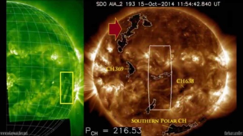 Strong celestial alignments on this day (Mars-Earth-Uranus), (Earth-Venus-Jupiter) and astrological aspects involving Mars and the Moon Indicate a large potential earthquake or a powerful solar event could be triggered. An unnumbered coronal hole situated at (18�S Latitude) may represent a possible earthquake in one of these listed locations:
