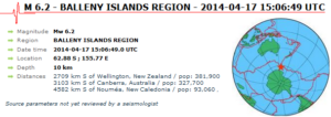 Latest News M 6.2 EARTHQUAKE – BALLENY ISLANDS REGION April 17, 2014 By QWJanuary 29, 2014Less 1 min read118 Views ShareTweetPinShare Previous PostM 6.7 EARTHQUAKE – SOUTH OF FIJI ISLANDS – May 4, 2014 Next PostM 6.9 EARTHQUAKE – BOUVET ISLAND REGION April 15, 2014 You May Also Like November 28, 2021 Magnitude 7.5 EARTHQUAKE Strikes NORTHERN PERU – Nov 28, 2021 October 8, 2023 Twin Quakes Rock Papua New Guinea (M6.8-M6.7) | Oct 7, 2023 January 28, 20180 M 6.6 EARTHQUAKE – BANDA SEA – March 25, 2018 August 26, 2022 Two Strong M-Class Solar Flares | August 26, 2022