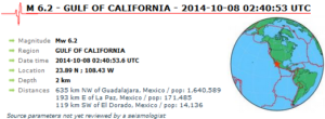Latest News M 6.2 EARTHQUAKE – GULF OF CALIFORNIA – October 8, 2014 By QWJanuary 29, 2014Less 1 min read112 Views ShareTweetPinShare Previous PostM4.3 Solar Flare – October 16, 2014 Next PostM 6.1 EARTHQUAKE – YUNNAN, CHINA – October 7, 2014 You May Also Like February 7, 2021 M 6.5 Quake hits remote part of Papua New Guinea; no casualties March 3, 2021 Powerful M 6.3 Earthquake rocks Central Greece January 1, 2023 Global Earthquakes for 2022 July 2, 2023 Strong Magnitude 6.9 Earthquake Strikes Tonga | July 2nd, 2023