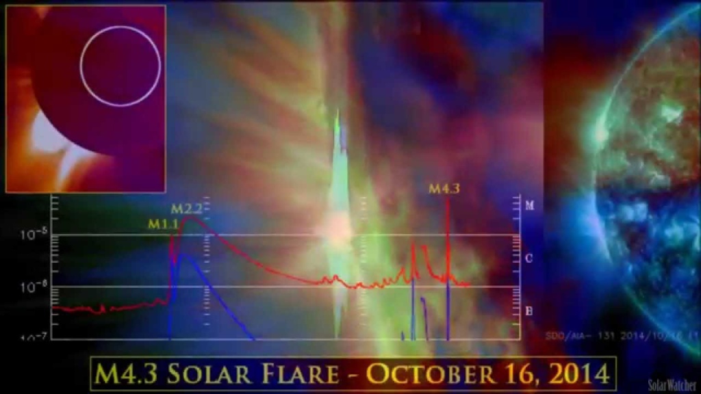An impulsive M4.3 Solar Flare was registered at 13:03 today from an active region yet to turn the earth facing solar disk and will be numbered once it does so. This active region could provide fireworks in the days ahead. As yet no Coronal Mass Ejection (CME) is available via satellite imagery but we can expect a large CME headed towards mars once imagery becomes available. Associated with this blast was 10cm radio burst with a duration of 60 seconds and a peak flux of 180 sfu.