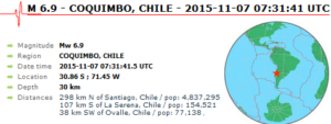 Latest News M 6.9 EARTHQUAKE – COQUIMBO, CHILE – November 7, 2015 By QWJanuary 29, 2015Less 1 min read110 Views ShareTweetPinShare Previous PostM 6.9 EARTHQUAKE – OFFSHORE COQUIMBO, CHILE – Nov 11, 2015 Next PostM 7.7 EARTHQUAKE – HINDU KUSH REGION, AFGHANISTAN – October 26, 2015 You May Also Like January 29, 2015 M 7.2 EARTHQUAKE – TAJIKISTAN – December 7, 2015 April 4, 2023 Strong Magnitude 7.0 Strikes Papua New Guinea | April 2, 2023 December 6, 2021 13 killed, after Massive Volcanic eruption at Semeru, Indonesia August 18, 20240 Strong Magnitude 7 Earthquakes Strikes Off East Coast of Kamchatka – August 18, 2024