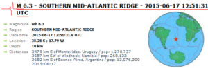 Latest News M 6.9 EARTHQUAKE – SOUTHERN MID-ATLANTIC RIDGE – June 17, 2015 By QWJanuary 29, 2015Less 1 min read111 Views ShareTweetPinShare Previous PostM 6.6 EARTHQUAKE – OFFSHORE BIO-BIO, CHILE – June 20, 2015 Next PostM 6.0 EARTHQUAKE – TONGA – June 12, 2015 You May Also Like January 29, 2015 M 5.6 EARTHQUAKE – NEAR EAST COAST OF AUSTRALIA – August 1, 2015 June 16, 2023 Strong Magnitude 7.2 Earthquake Strikes South Of Fiji | June 16, 2023 June 21, 2021 Strong Magnitude 6.3 Earthquake shakes New Zealand’s Kermadec Islands | June 20, 2021 January 29, 2014 Behind Limb Eruption & CME – September 26, 2014
