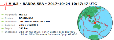 for a 7.3 Magnitude Earthquake in one of these listed locations during this watch period: