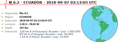 for a 6.6 Magnitude Earthquake in one of these listed locations during this watch period: