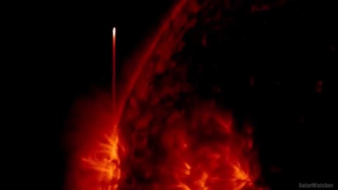 This stereoscopic visualization shows a simple model of the Earth’s magnetic field. The magnetic field partially shields the Earth from harmful charged particles emanating from the sun. The field is stretched back away from Sun by solar particle and radiation pressures.