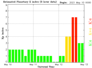 An Earth-Facing filament eruption released from the Sun May 9th has sent a Coronal Mass Ejection impacting Earth’s magnetic earlier today. Earth’s magnetic field is still reverberating from a CME impact during the early hours of May 12th. The solar storm cloud struck at approximately 06:30 UTC, setting the stage for a very strong geomagnetic storm. At its peak, the disturbance registered G3 on NOAA Storm Scales, making it the strongest geomagnetic storm of Solar Cycle 25.