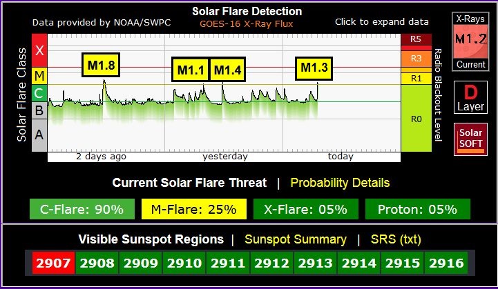 A series of low end M-Class Solar flares have been registered over the last 48 hours with more to come as X-Ray background levels rise due to a series of active regions on the solar corona.