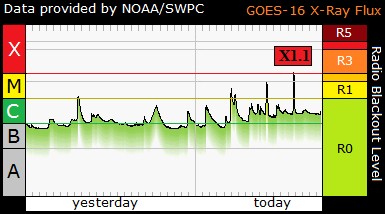 Two M-Class Flares preceded the major X-Class eruption and sent a CME barrage towards both Mars and Venus. A Brief radio blackout occurred across the HF spectrum during the eruption.
