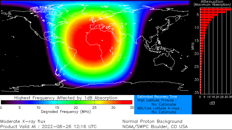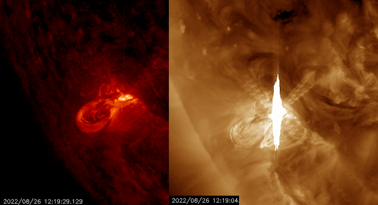 A strong M7.2 solar flare was just observed around Active Region 13089 in the southeast quadrant at 12:14 UTC Aug 26. Another flare measured M5.3 took place just 17 minutes later from the same active region.