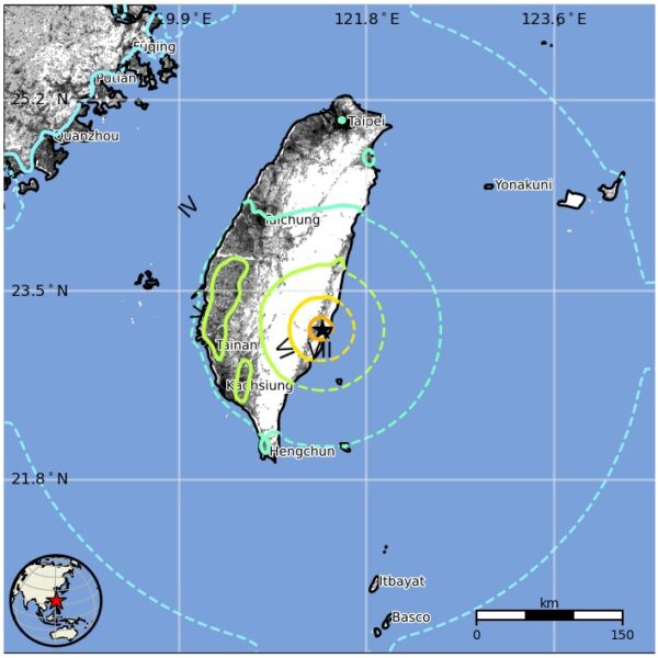 The U.S. Tsunami Warning Center issued a warning in Taiwan after the tremor. It said hazardous tsunami waves were possible within 300 km the epicenter along the coasts of Taiwan.