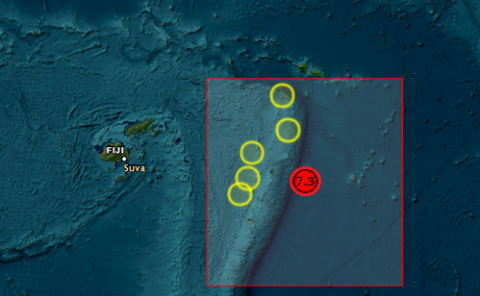 A preliminary M6.8 earthquake occurred south of Fiji at 9:38pm FJT. Due to its deep depth it poses no threat to the region.