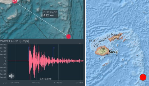 A preliminary M7.0 earthquake has occurred in the southern Lau region near Ono-i-Lau at 7:09pm FJT, however, due to its deep depth won’t pose a threat for any tsunami.