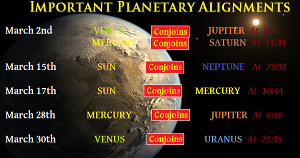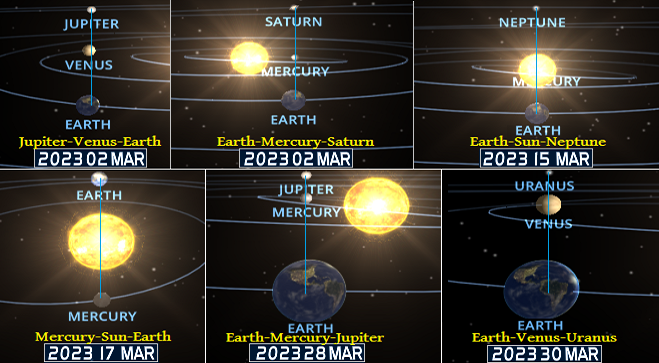 A big month with Six Geocentric Alignments are featured in March 2023. Should prove an interesting spectacle for skywatchers and could also provide some geophysical fireworks with some very large earthquakes and volcanic unrest. Images in this article are taken from the SolarWatcher.net Earthquake Global Newsletter shows some interesting things to look out for in March be sure to click on the link below for more detailed information.