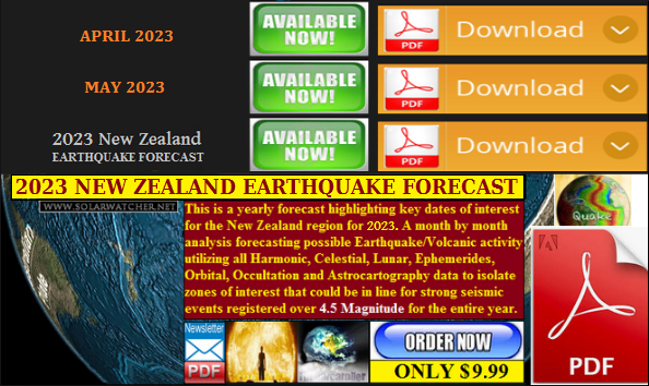 Support this website by visiting the SolarWatcher.net and website. Links are below for the latest APRIL & MAY 2023 Global Earthquake Newsletters are now available in PDF format as well as the 2023 New Zealand Earthquake Forecast (FULL YEAR) Newsletter for those interested the links are below (PDF File Download)