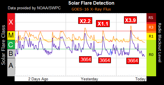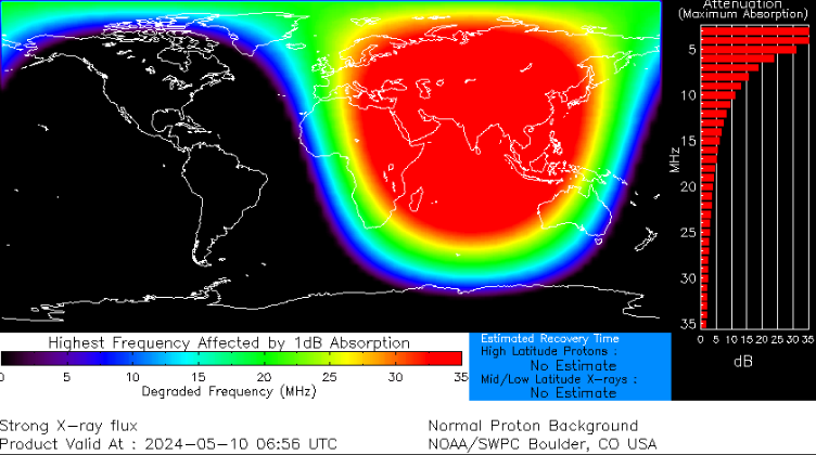 Active Region 13664 just unleashed a significant X4 Solar Flare at 06:54 UTC. This X4 blast is associated with a Type II radio event with an estimated velocity ofover 1000 km/s, along with a 10cm radio burst measuring 900 SFU and lasting 16 minutes. A coronal mass ejection (CME) is now visible and it appears the main mass is heading slightly west but there will be an earth-directed comment in 2-3 days where geomagnetic storming will be possible at mid to high latitudes sometime May 13.