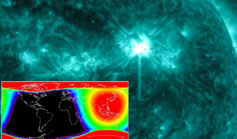 Departed Active Region 13664 just behind the eastern limb is returning and it just unleashed another major X-Flare peaking to X2.9 at 07:08 UTC May 27 causing a strong R3 level radio blackout over Asia. A strong CME associated with this blast flare is heading well to the west of the earth and will not have an earth bound component. This active region was responsible for 12 X-Class solar flares last rotation and promises to deliver more over the next two weeks. This region will be reassigned a new number once it officially turns the eastern limb in the next 48 hours.