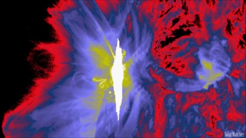 X-Flare! A long duration X1.9 was just unleashed around Active Region 13873 at 07:19 UTC October 26. A strong Halo Coronal Mass Ejection (CME) appears to be Earth directed and should initiate strong G3 Geomagnetic storms early October 29th. Auroras will be possible mid to high latitudes.