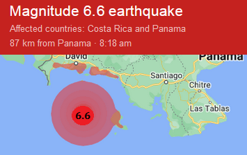 A Magnitude 6.6 earthquake struck off the Pacific coast of Panama on Tuesday, there were